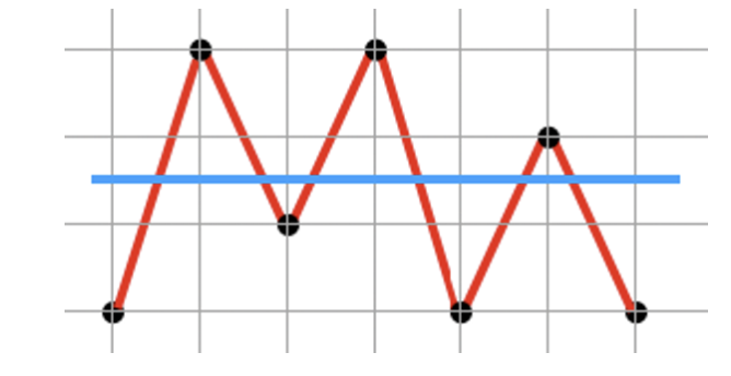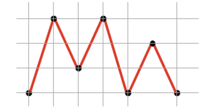 먼저 수직 선분 V를 생각해 보겠습니다. 이 V 값은 y축 값은 아무 영향을 끼치지 않습니다. 오직 x축의 값의 변화량에 따라서 겹치는 부분이 생깁니다. x축의 변화량을 보겠습니다. 0 → 1 → 2 → 5 → 4 → 3 → 0으로 변합니다. 마지막 0은 직각 다각형을 그리기 위해서는 원점인 0으로 돌아와야 하기 때문 입니다. 이것을 그림으로 표현하면 다음과 같습니다.