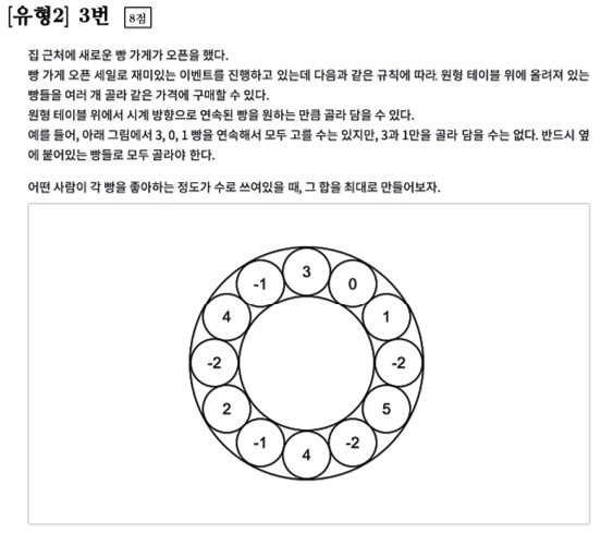 연속적으로 빵을 구매했을 때 좋아하는 정도가 최대가 되려면 최대한 많은 빵을 선택해야 합니다. 하지만 선호도가 음수인 경우도 있어 선호도의 합이 작아지는 부분을 찾아야 합니다. 먼저 가장 선호도가 높은 빵을 시작으로 빵을 골라보겠습니다.