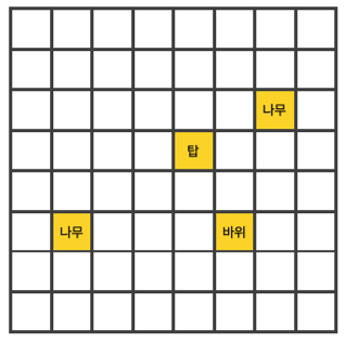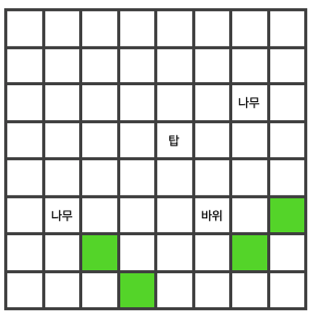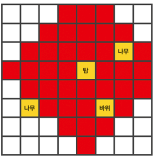 먼저 탑이 주변에 없다는 것을 표현해 보겠습니다. 빨간색으로 되어 있는 부분이 탑이 주변에 있다고 할 수 있는 곳입니다.