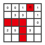 (4, 4) 위치의 3이 이미 만족했기 때문에 빈칸으로 남아있는 (4, 4)의 주변이 모두 0이 됩니다.