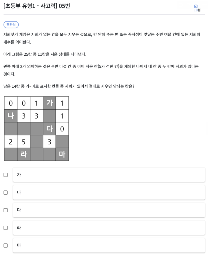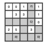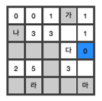 (3, 5)위치에 0이고, (2, 5)위치에는 1개의 지뢰가 있습니다. 따라서 ‘가’의 위치에 지뢰가 있다는 것을 알 수 있습니다.