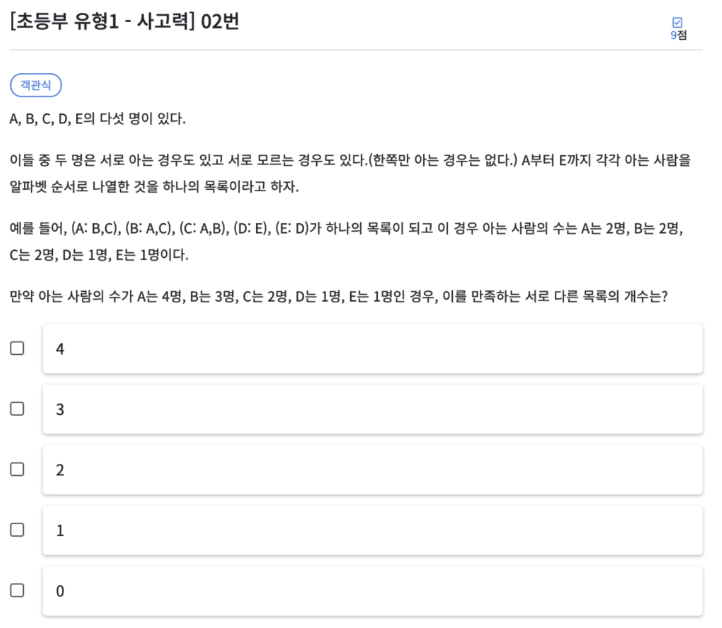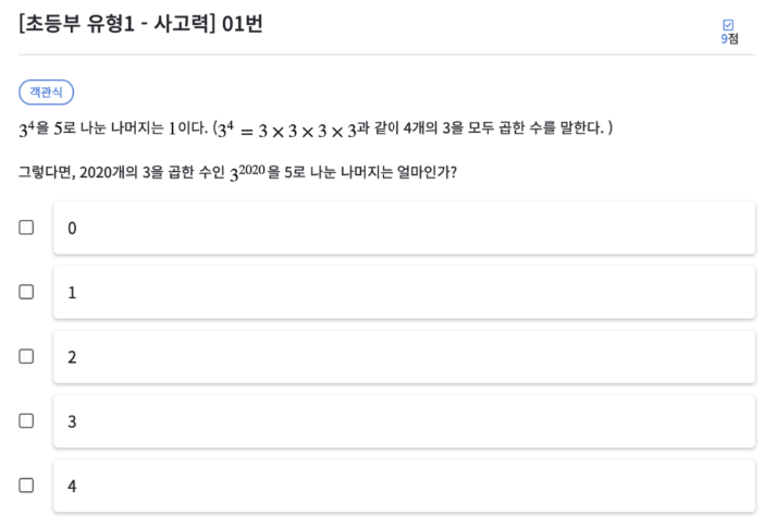 2020년 정보올림피아드 필기 초등부(1 ~ 5)