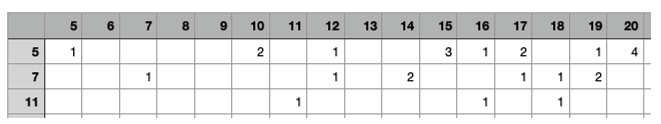 잘 보면 19원은 14원을 만든 7원 동전 2개에 5원 동전 하나가 추가된 것을 알 수 있습니다. 20원 역시 5원 동전 3개인 15원에서 1개를 더해 5원 동전 4개로 만든 것을 알 수 있습니다.