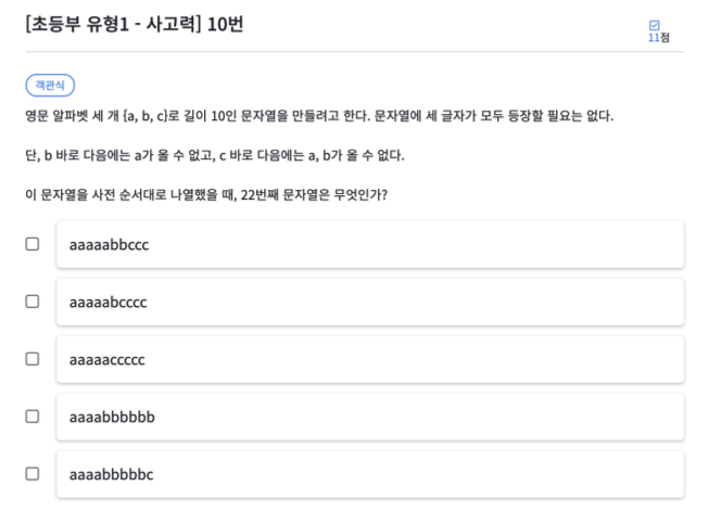 규칙을 잘 이해해야 합니다. b 다음에는 a가 올 수 없다는 것은 b 다음에는 b나, c만 올 수 있다는 뜻입니다. c 다음에는 a, b가 올 수 없다는 것은 c만 올 수 있다는 뜻입니다. 즉 문자가 작아지지 않고 계속 커진다는 뜻입니다.