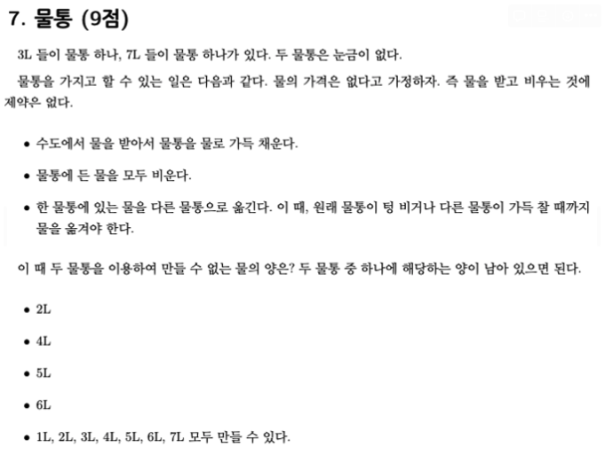 따라서 정답은 1L부터 7L까지 모두 만들 수 있습니다.