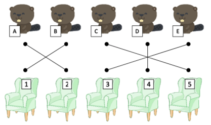 다음으로 규칙3을 보면 B, C는 E의 바로 옆에 앉을 수 없습니다. 이미 E의 오른쪽은 D 이기 때문에 남은 A가 E의 왼쪽이 됩니다.