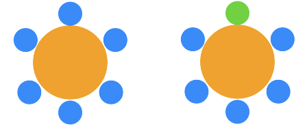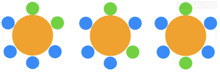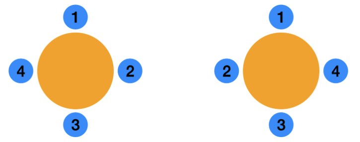 이 두가지 방식은 원탁에 앉아 있는 사람의 입장에서 보면 똑같습니다. 1번은 3번을 마주보고 있고, 왼쪽에는 2번, 오른쪽에는 4번이 있습니다.