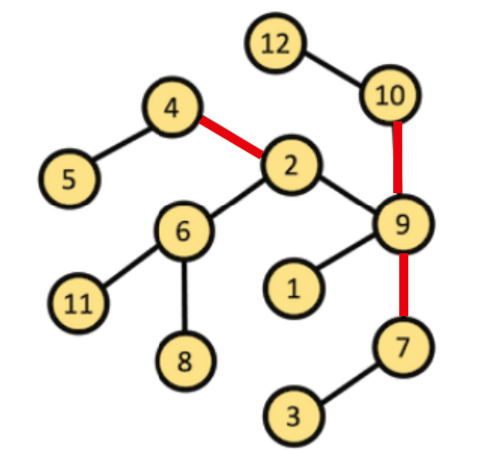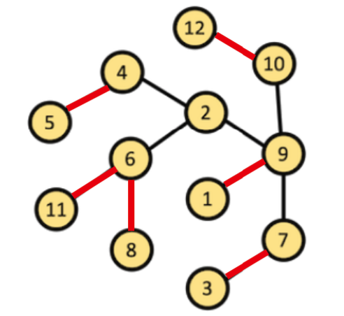 2 - 6 으로 연결된 간선은 2번째에 위치하긴 했지만 경우가 다르기 때문에 따로 계산하겠습니다. 10 - 9로 연결된 간선을 계산해보고 경우가 3가지가 있으니 3배를 하면 됩니다. 총 220개의 경우에서 10, 12번을 제외한 10개의 정점에서 3개의 정점을 고르는 경우를 계산하면 됩니다. 계산해보면 총 120가지가 나오고 220 - 120을 하면 100번 사용된다는 것을 알 수 있습니다. 총 3가지 경우이기 때문에 300번이 됩니다.