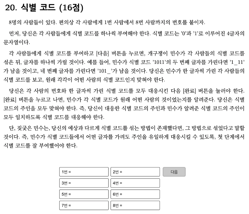2024년도 정보올림피아드 1차대회 필기 초등부 16번부터 20번까지 문제 풀이 입니다.