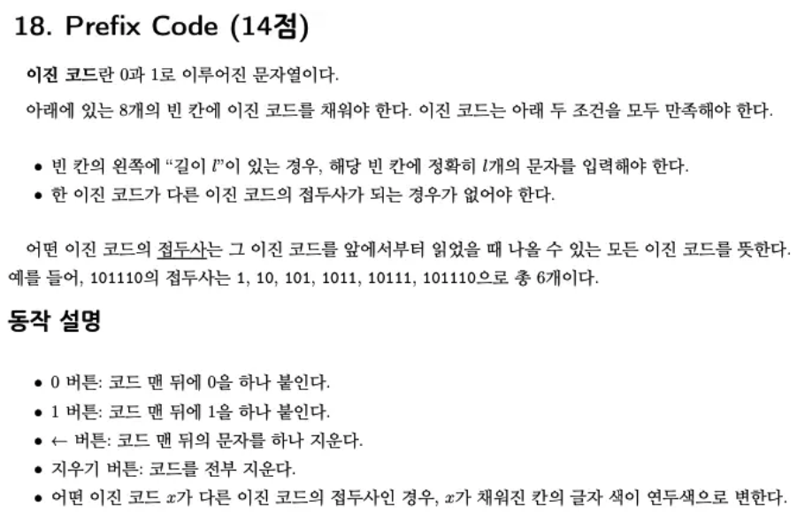 작은 숫자부터 시작합니다. 길이가 2인 것부터 시작해서 길이 5까지 만들어 나갑니다. 이 때 다른 이진 코드의 접두사가 되지 않게 만들어야 합니다.