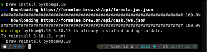 예를 들어 파이썬 3.10을 설치한다고 하면 아래 명령어로 원하는 버전으로 설치할 수 있습니다.