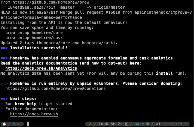 brew 설치가 완료되면 이제 brew를 사용해 보도록 하겠습니다.