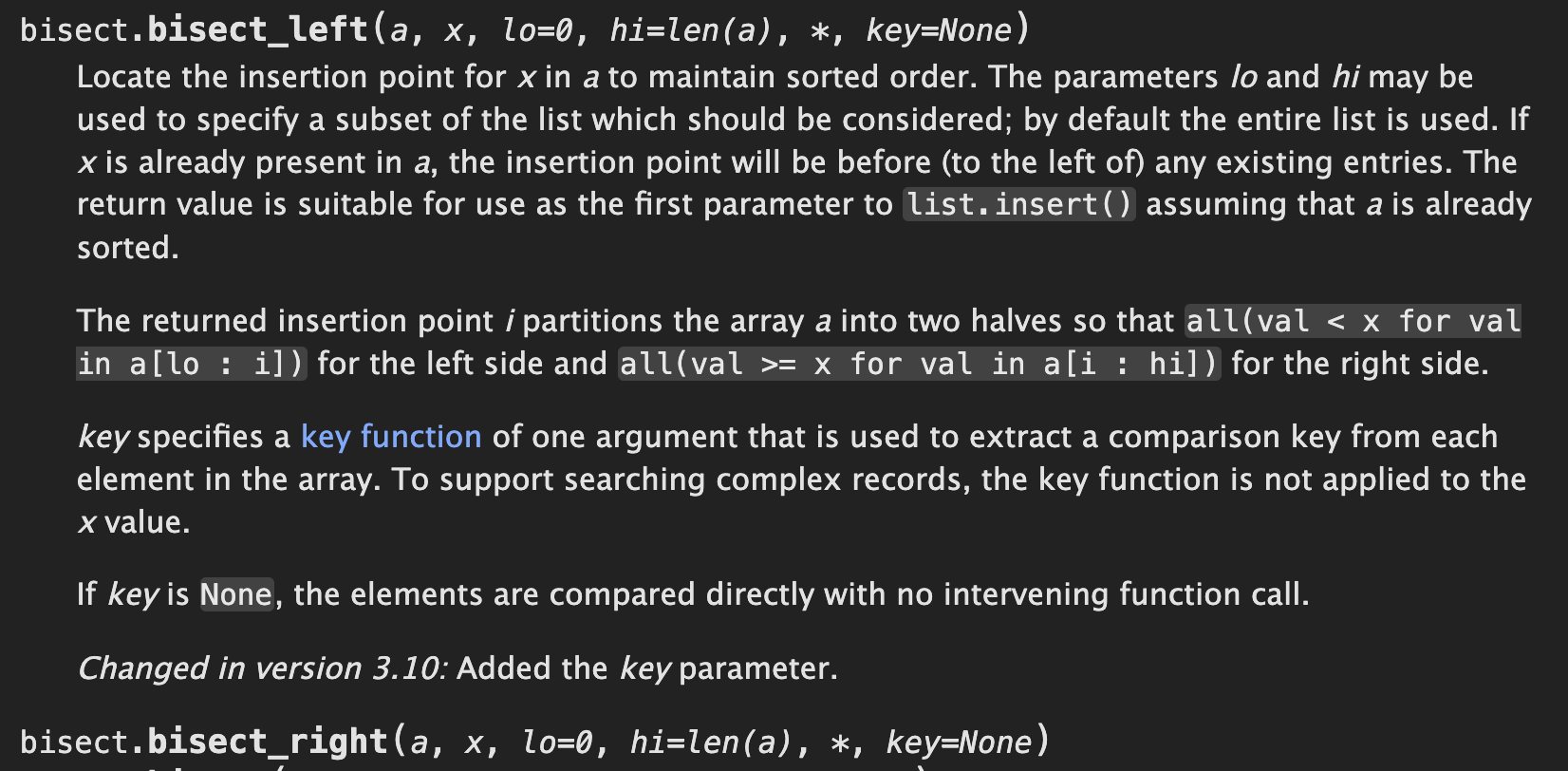 백준은 PyPy3 버전이 3.9 입니다. 따라서 bisect 모듈에 key 파라메터를 사용할 수 없습니다. 혹시라도 저처럼 bisect 함수를 사용하는 사람은 참고하시길 바랍니다.