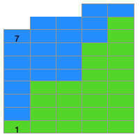 2개의 캐릭터까지의 레벨이 16이고, 뒤의 캐릭터의 레벨이 7이기 때문에 이 3개의 레벨 총 합은 16 + 7로 23이 됩니다. 이를 3으로 나누어 주면 7이되고 2가 남게 됩니다. 즉 3개의 캐릭터의 평균 높이는 7이되고 남은 2를 뒤쪽에 1씩 넘겨줍니다.