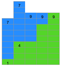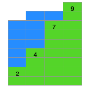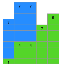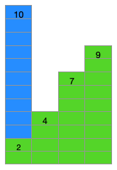 다음과 같은 모양이 되고 오른쪽은 평탄화가 되었습니다. 이제 왼쪽을 봐야 합니다. 왼쪽인 2번째의 레벨이 7 + 4인 11로 3번째인 9보다 큽니다. 왼쪽도 오른쪽과 마찬가지로 더해주어 평탄화 작업을 하면 됩니다.
