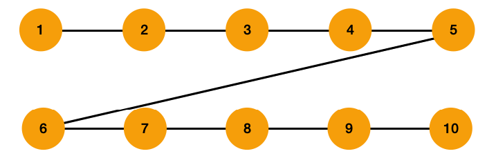 루트 1부터 시작하여 10번까지 1열로 늘어서 있는 트리가 있습니다. 그림의 자리 차지를 줄이기 위해서 위와 같이 표시 하였습니다. 먼저 기존의 부모 배열을 만들어 보겠습니다. 부모의 초기 세팅으로 생각하면 됩니다.