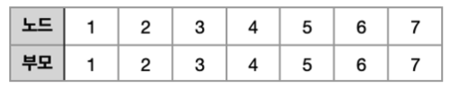 유니온 파인드는 여러 노드중 두 노드가 연결 되어 있는지, 아닌지만을 알고 싶을 때 사용 합니다. 이 문제에서는 노드간의 연결이 어떻게 되어 있는지는 상관 없습니다. 아래와 같이 2번과 5번의 부모를 확인하여 부모가 같으면 연결되어 있다고 생각하는 것이 유니온 파인드의 핵심입니다.
