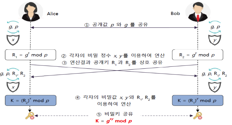 $$ (g^m)^n = (g^n)^m = g^{mn} \bmod p,(p는 소수)$$