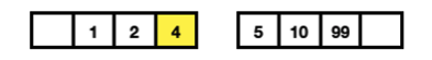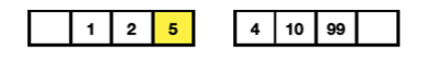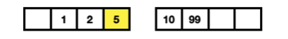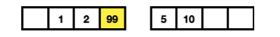 길이가 다르기 때문에 오른쪽 큐에 숫자를 입력합니다. 오른쪽 큐는 오름차순으로 정렬되기 때문에 10은 뒤로가게되고 가운데 숫자는 변함없이 2가 됩니다. 이번에는 예제와 다르게 99를 입력해 보겠습니다.
