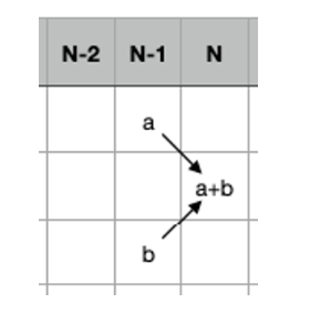이 그림과 같이 N - 1 번째 a의 경우의 수와 b의 경우의 수의 합인 N번째 a + b가 N번째로 끝나는 수의 경우의 수가 되는 것입니다. 이렇게 경우의 수를 위와 아래에서 더해주면 되지만 마지막 값이 0이거나 9일 경우에는 아래와 같이 한가지 경우만 가능합니다.