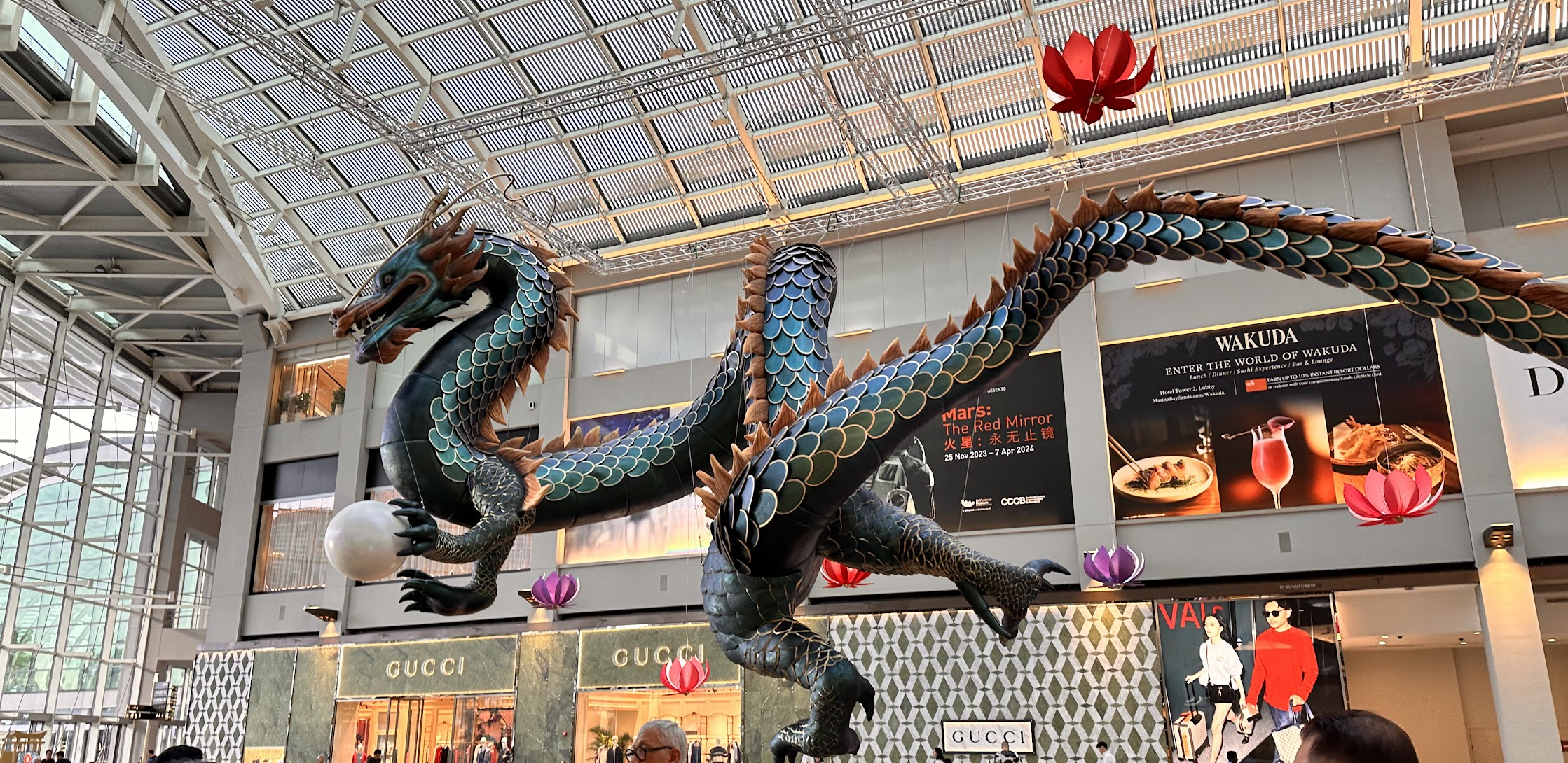 안쪽에 있는 에스칼레이터를 타고 올라가면 2층에서는 마리나 베이 샌즈를 위에서 볼 수 있습니다.