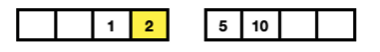 양쪽 큐의 길이가 1로 같기 때문에 왼쪽 큐에 숫자를 추가합니다. 오름차순으로 정렬되어 2가 가운데 숫자가 됩니다. 2와 5를 비교하여도 순서가 맞기 때문에 바뀌지 않습니다. 다음으로 10을 추가합니다.