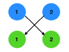 다음으로 친구 2명이 있는 경우를 생각하겠습니다. 두 사람이 선물을 교환하는 방법은 하나밖에 없습니다.