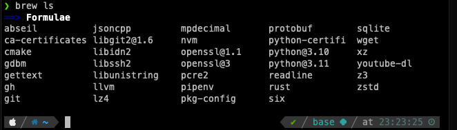 설치하고 싶은 프로그램이 아니라 현재 설치된 프로그램 목록을 보고 싶을 때에는 list,ls 명령어로 brew로 설치된 프로그램 목록을 볼수 있습니다.